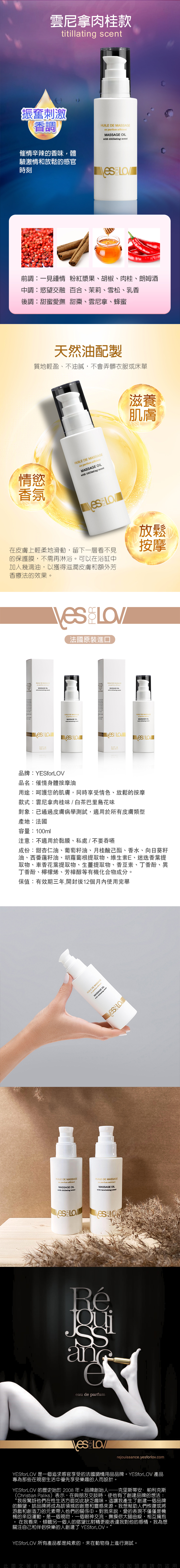 獨特的YESFORLOV按摩油經特別配製,可喚醒您的欲望感官。