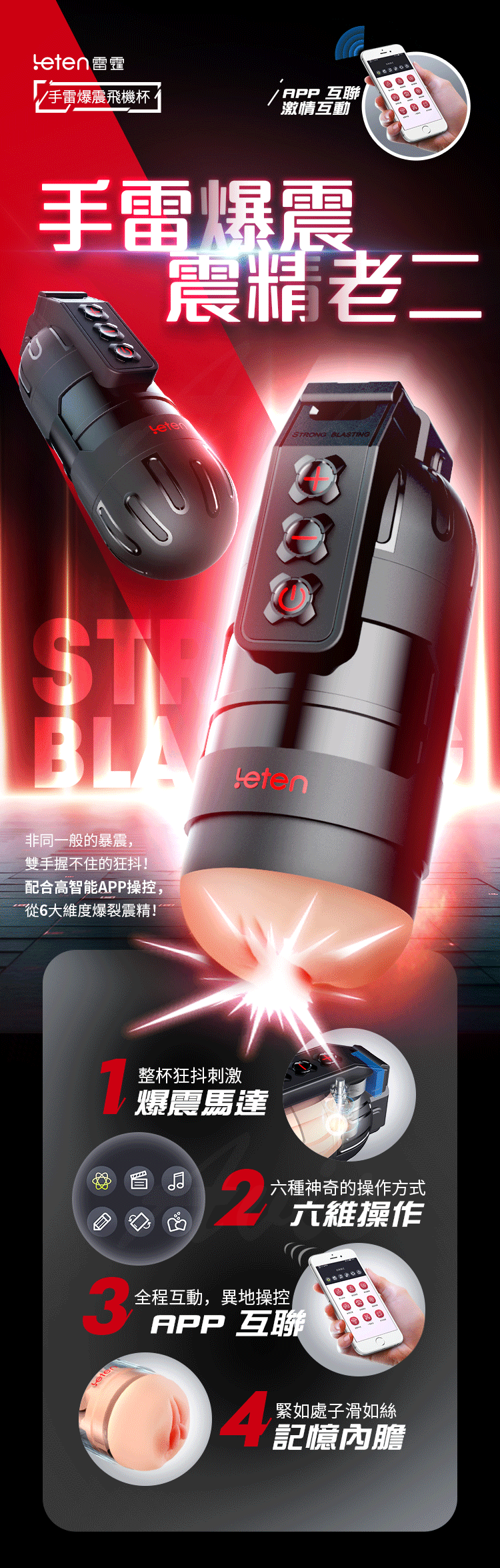 Leten|手雷爆震抖臀|智能APP操控發音飛機杯