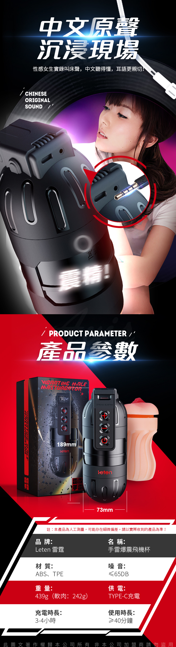 產品名稱:Leten|手雷爆震抖臀|智能APP操控發音飛機杯