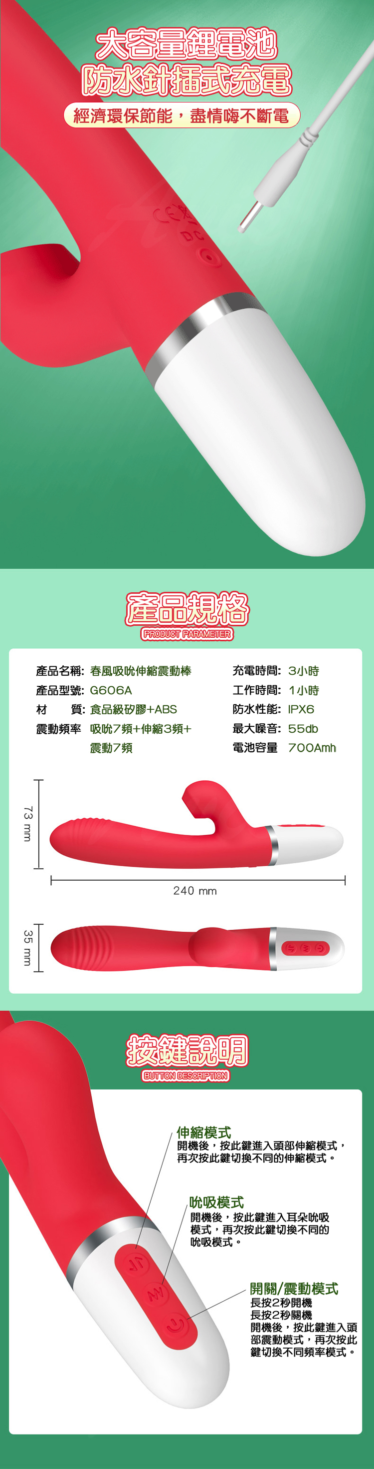 震動頻率:吸頻+伸縮3頻+震動7頻