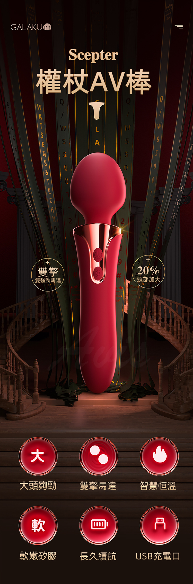 產品名稱:GALAKU|權杖|前震後插AV按摩棒 紅