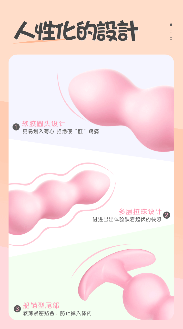 3種款式的高潮體驗套裝。其設計貼合身體曲線,溝紋直達高潮,讓您在享受後庭的刺激時,更能體驗到獨特的快感。柔軟的材質使用了Q彈舒適的軟膠,觸感絲滑剔透,帶來無比的舒適感受。無論是初探後庭的新手還是尋求更多刺激的玩家,這套組都能滿足您的需求,讓您享受到前所未有的愉悅體驗。
