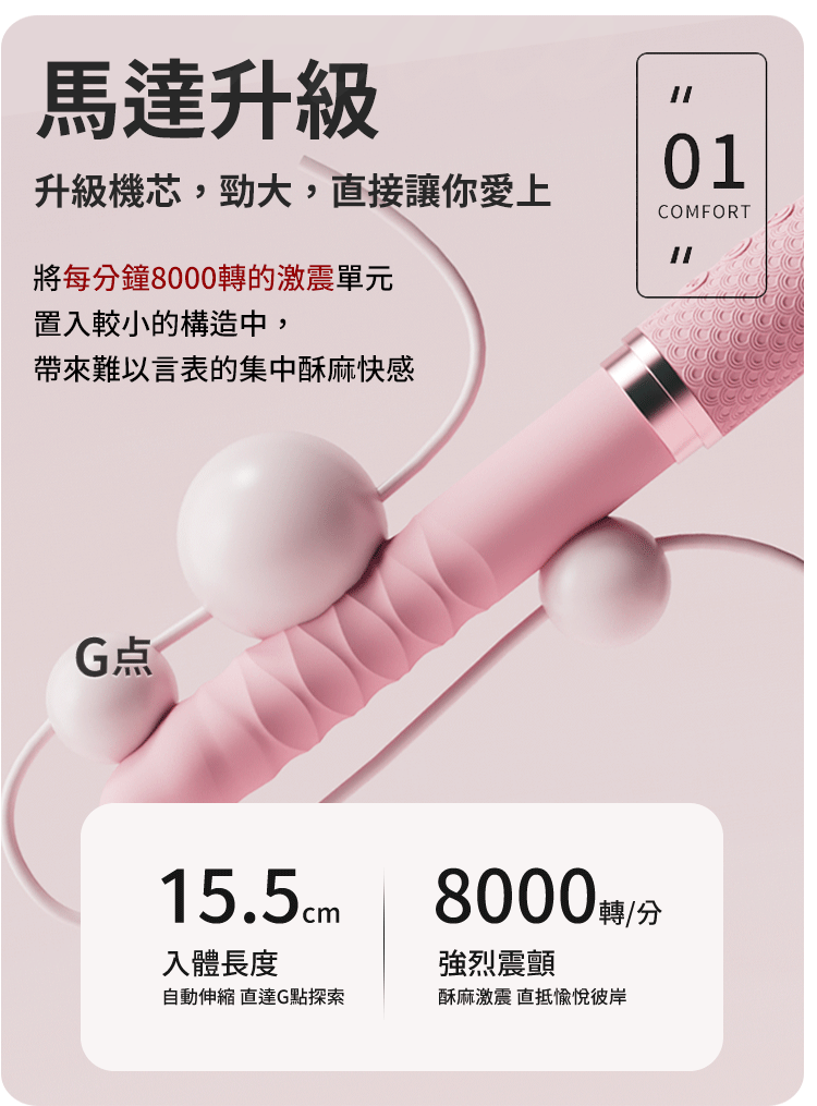 擁有勁大力足的特質,配置專屬全銅馬達,讓每一次的體驗都充滿力量與活力。