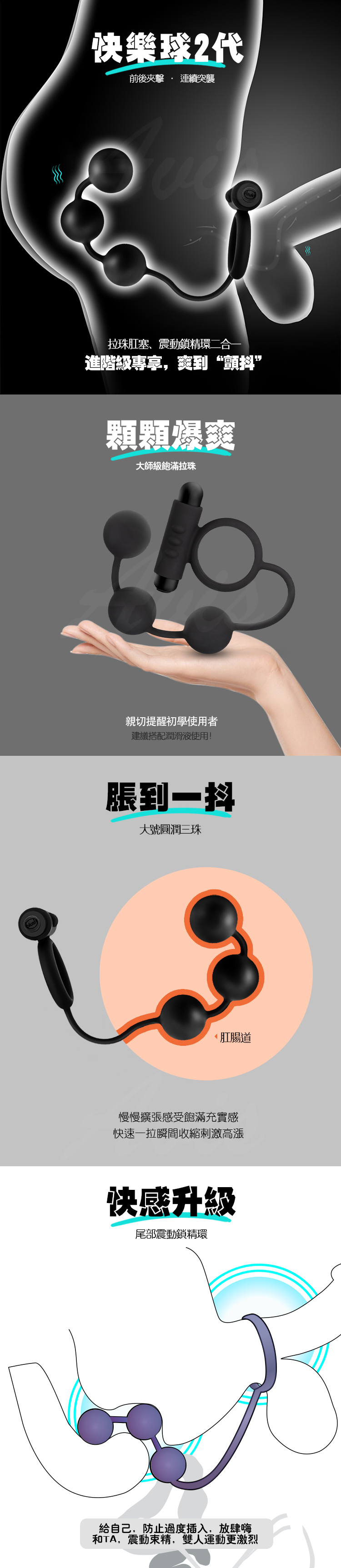 - **雙重快感設計**:結合拉珠肛塞與震動鎖精,前後夾擊,帶來連續突襲般的刺激體驗。