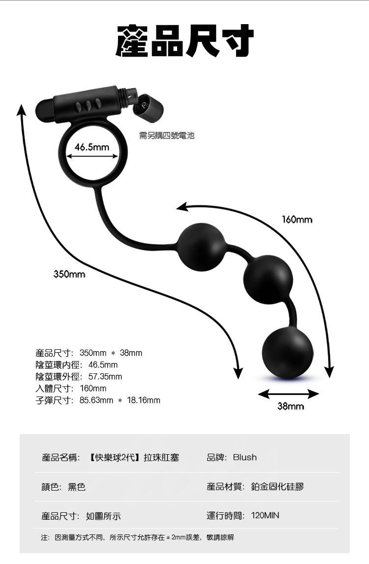 產品名稱:Blush|快樂球2代|拉珠肛塞 鎖精環