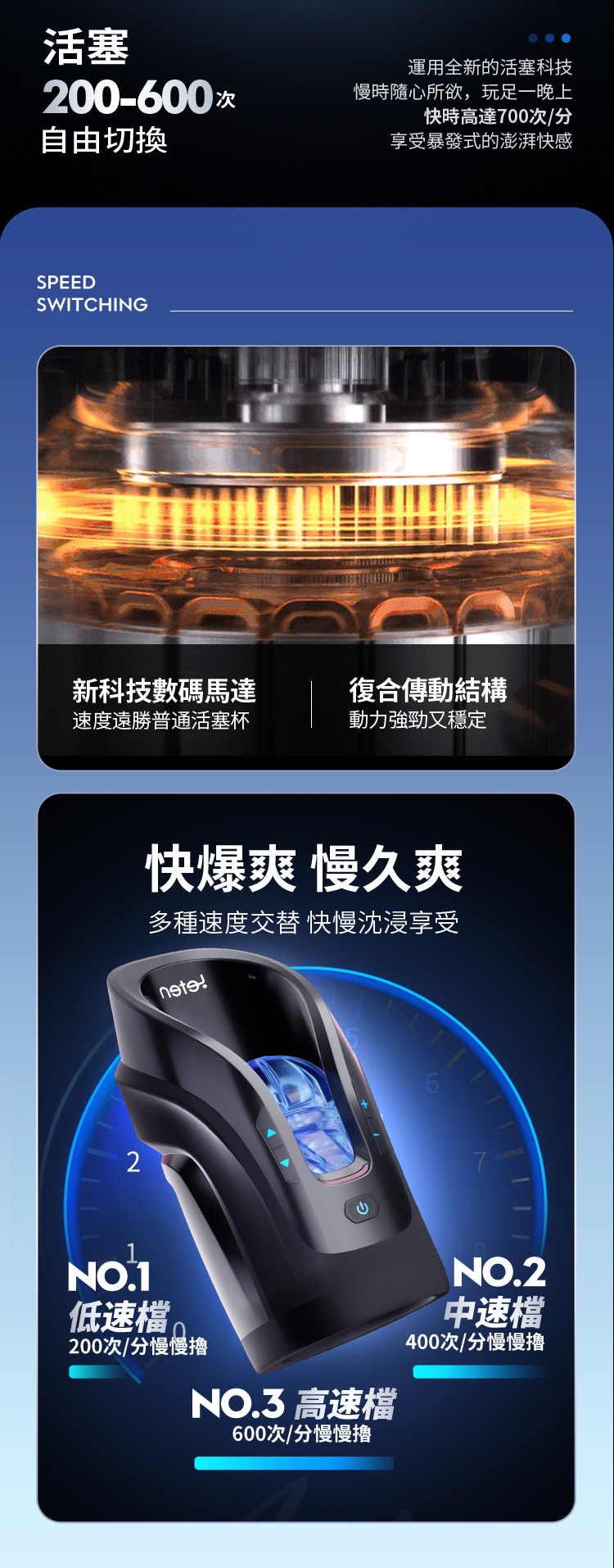 3檔速度調節*:依據您的喜好自由調整速度,從溫柔的慢速到極致的高速,隨心所欲,滿足不同時刻的渴望。