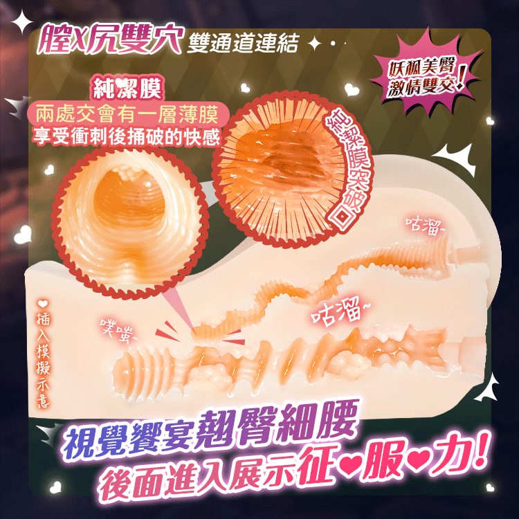 蜜穴與後庭通道相連,形成兩處交會的純潔膜,突破瞬間觸發無與倫比的快感。