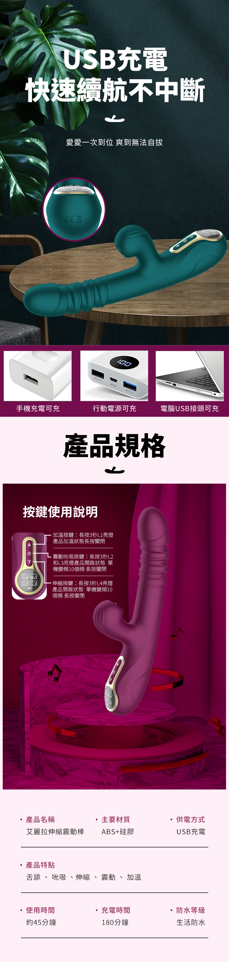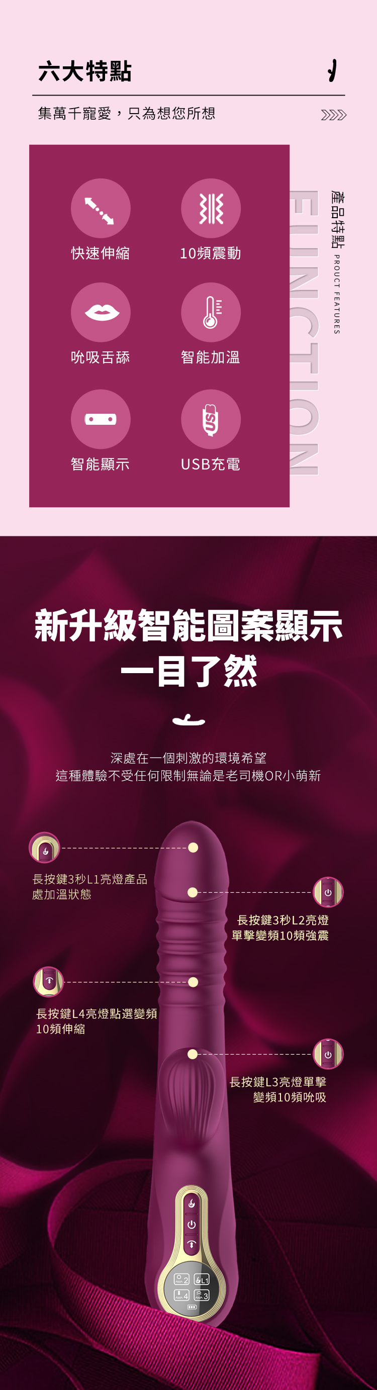10種伸縮模式,強勁深入,每一下都深入靈魂,滿足所有翻雲覆雨的幻想與渴望。