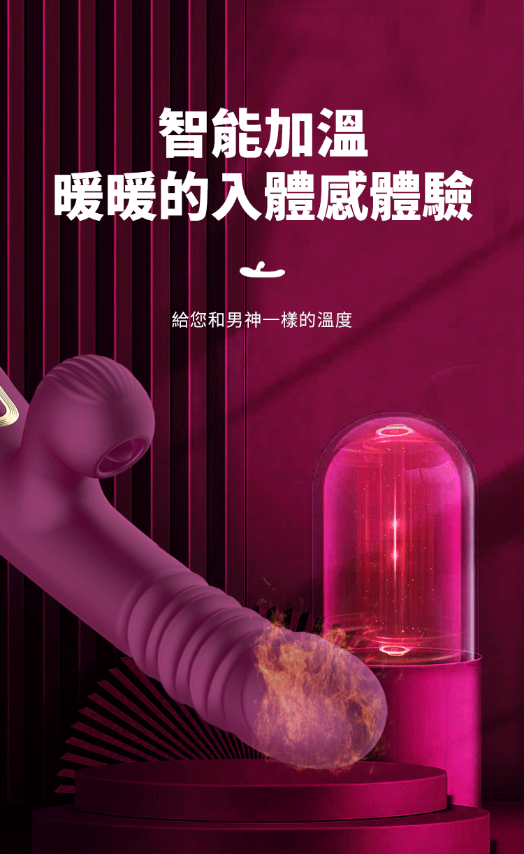 模擬暖男般的貼心陪伴,內置智能加溫功能,溫度穩定於40°C,讓你的每次體驗都充滿火熱與暖意,徹底放鬆身心。