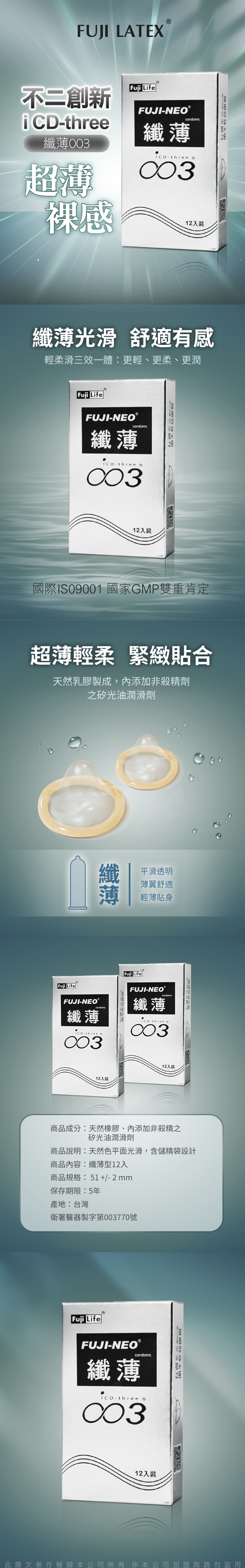 FUJI-NEO|不二新創 纖薄|衛生套 保險套 銀 12入