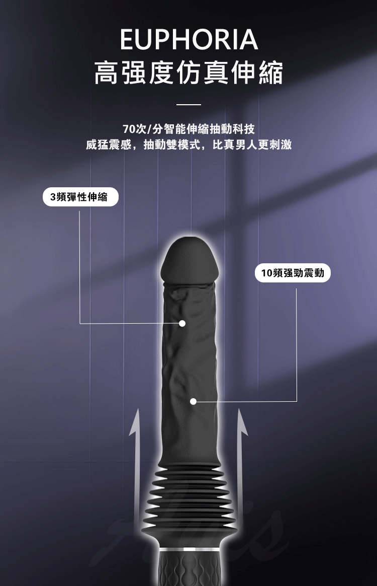 70mm超長伸縮行程,每一次深入都直搗慾望核心。搭載強勁馬達動力引擎,不卡頓、不停擺,讓你在愛的衝刺中無後顧之憂。專為G點設計的激震衝擊,次次精準命中,高潮來得毫不費力!