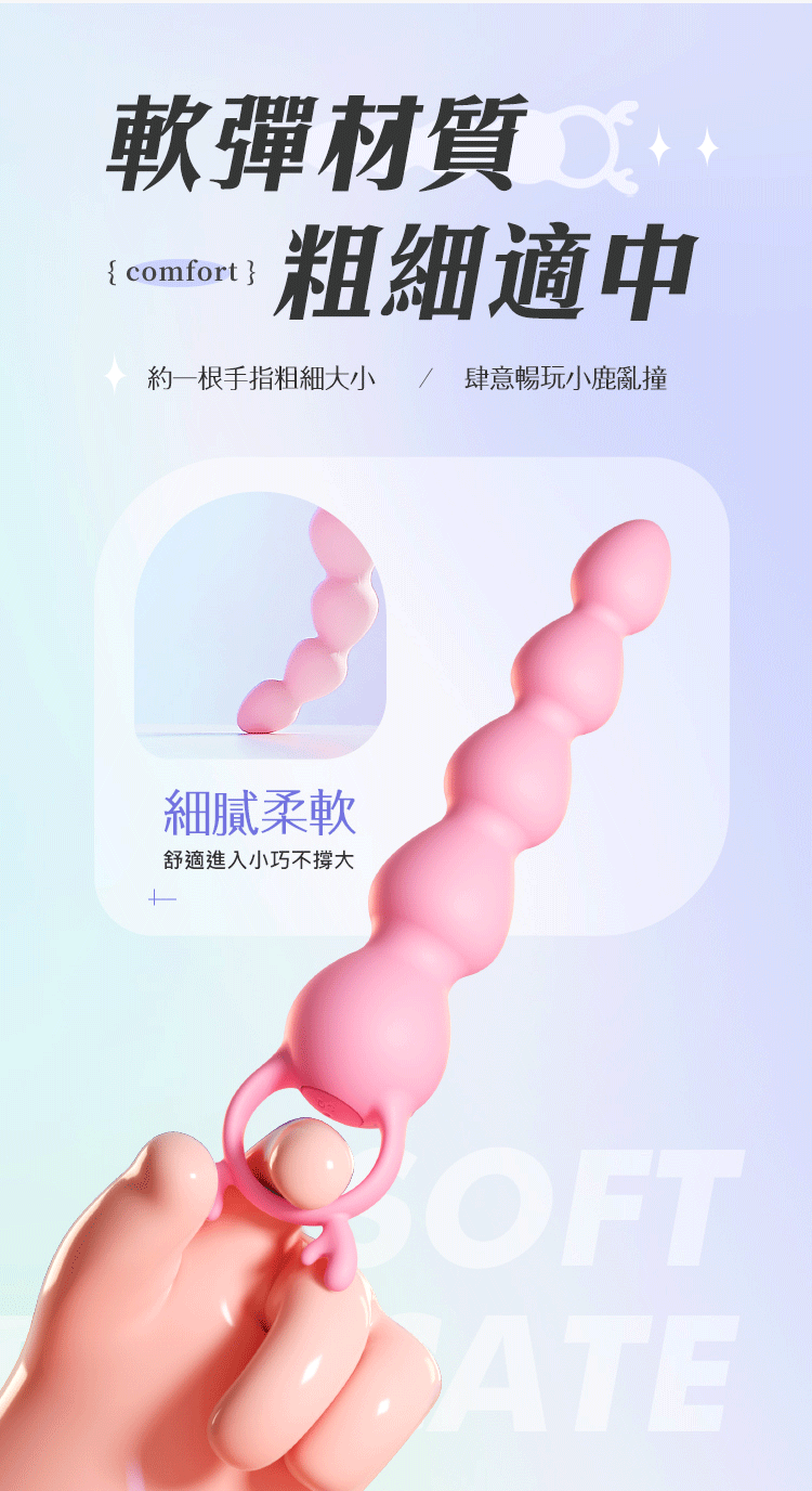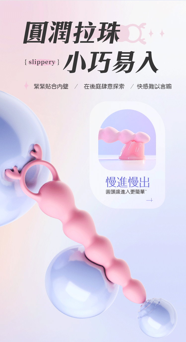 選用高彈柔膚矽膠,圓珠滑順、貼合曲線,舒適進出不卡卡,新手也能輕鬆嘗試!