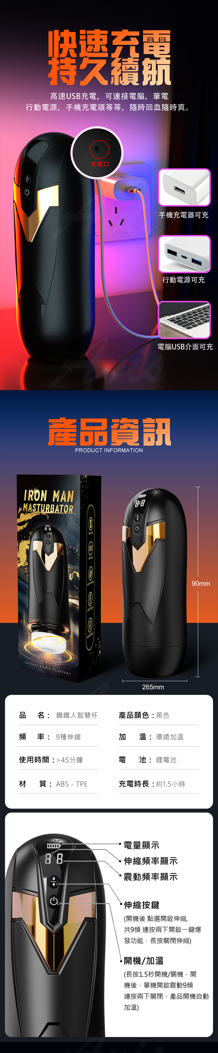 品 名:鋼鐵俠|伸縮智能飛機杯