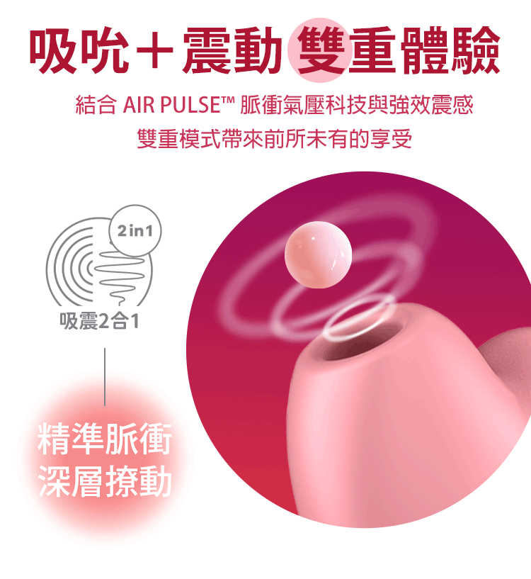 萌心外型,卻蘊藏雙重誘惑!結合 吸吮 + 震動,帶來前所未有的 2 in 1 感受。