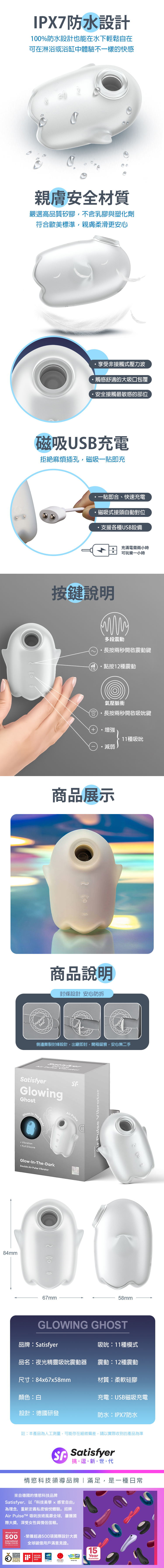 品名:Satisfyer|Glowing Ghost|夜光精靈 發光吸吮陰蒂震動器 亮白