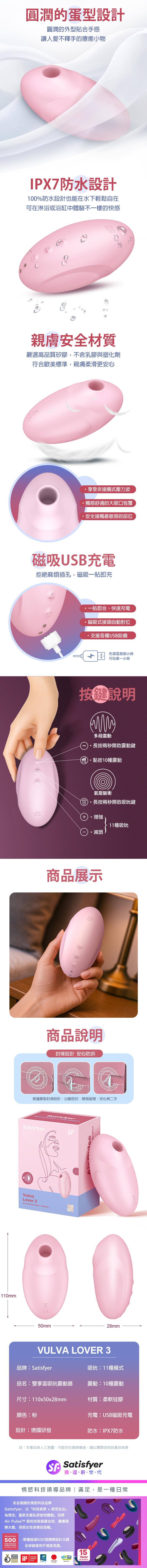 品名:Satisfyer|Vulva Lover 3|雙享蛋 吸吮陰蒂震動器 粉