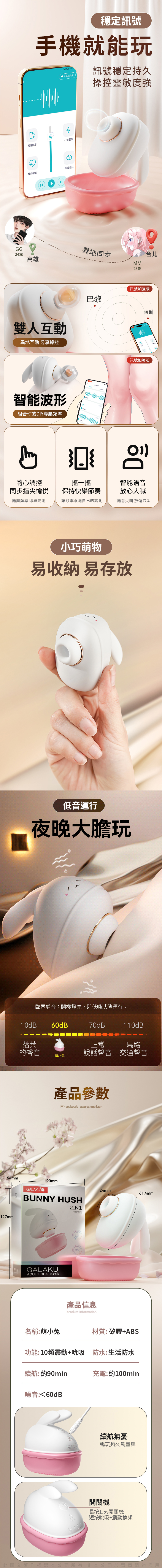 名稱:GALAKU|萌小兔|吸吮震動按摩器 AI版
