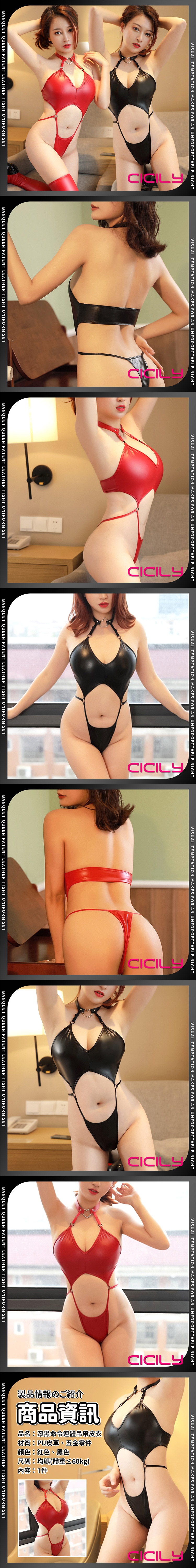 品名:CICILY|漆黑命令 連體緊身漆皮吊帶衣