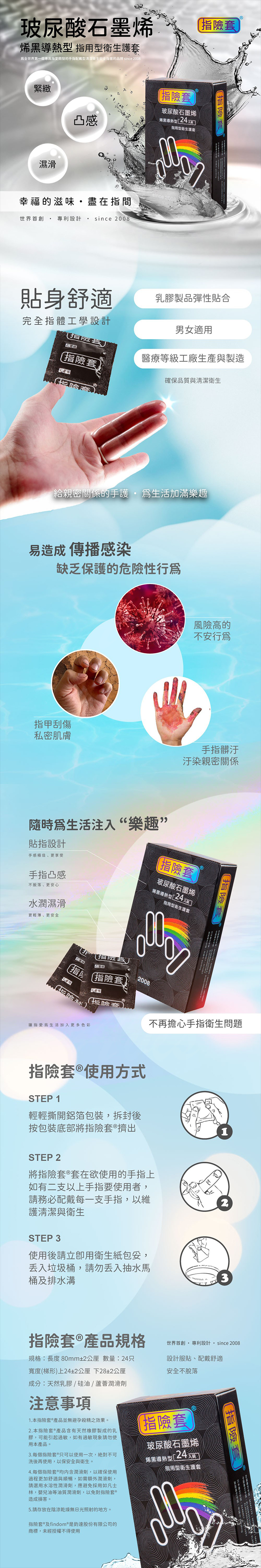品牌名稱:Findom|玻尿酸石墨烯指險套 24入/盒