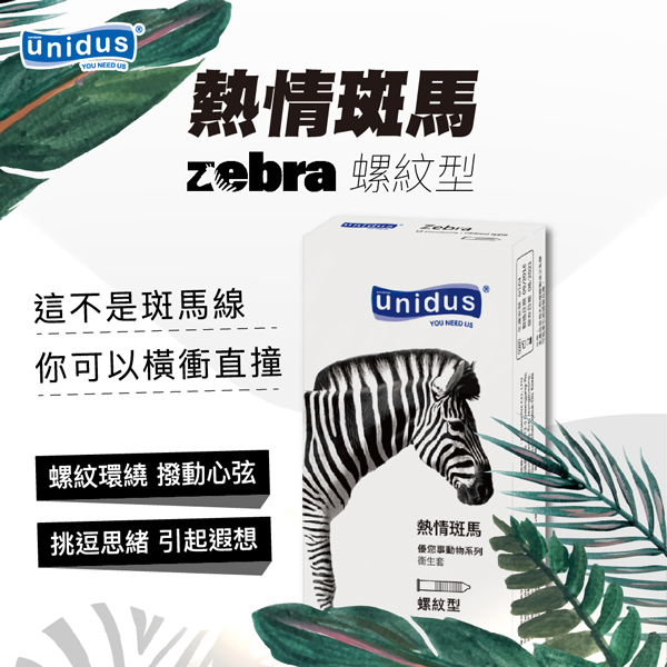 unidus優您事 動物系列保險套-熱情斑馬-螺紋...